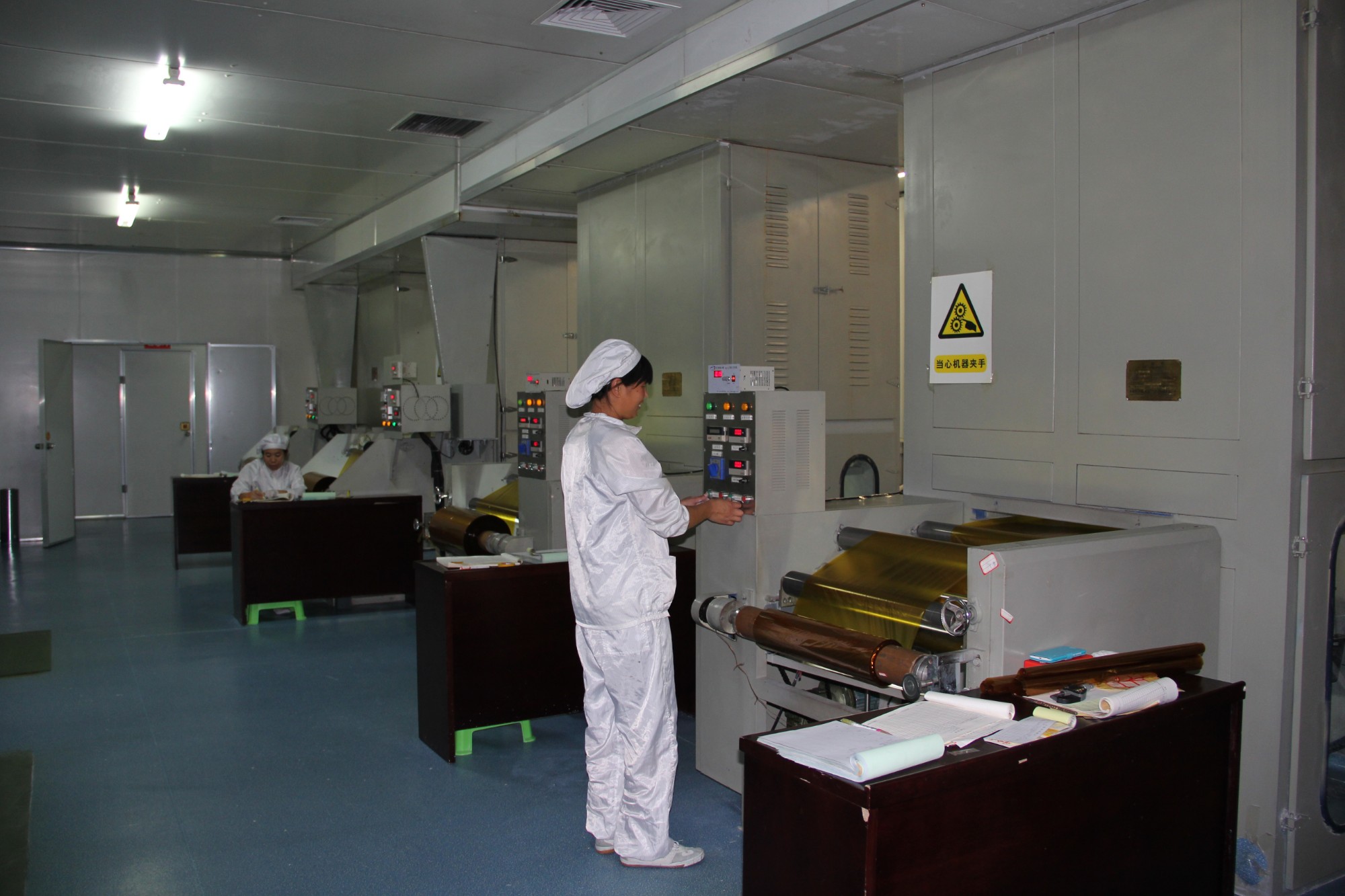 為控制剝離強(qiáng)度的穩(wěn)定,涂膠工序膠水全部使用東岳和浙江永和氟膠水,每卷涂膠膜都會(huì)對(duì)卷頭與卷尾剝離強(qiáng)度進(jìn)行測(cè)試,保證剝離強(qiáng)度符合電磁線使用